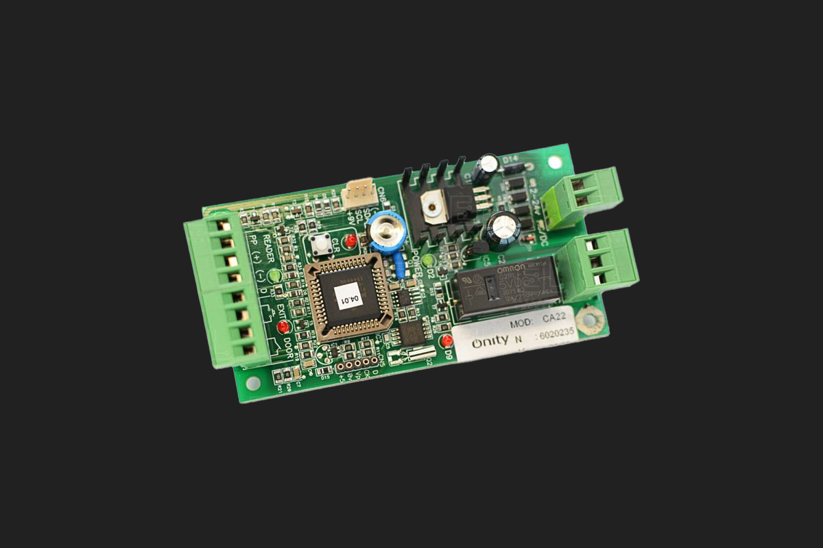 Es el cerebro que recibe la señal desde un lector mural Onity (wall reader), valida la credencial (tarjeta RFID o llave móvil DirectKey), y activa un relevo eléctrico que controla una cerradura magnética, electroimán, puerta automática o panel de elevador.